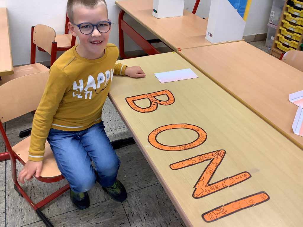 Nun sind alle Buchstaben bekannt und das ist doch ein toller Grund zum Feiern! Am vergangenen Wochenende trafen sich die Kinder und Eltern der Zebraklasse in der Schule, um einen schönen gemeinsamen Nachmittag ganz im Zeichen der Buchstaben zu verbringen. Zuerst führten alle Kinder der Klasse zusammen das Theaterstück „Die Geschichte vom A“ auf. Anschließend stärkten sie sich am Kuchenbuffet und spielten an verschiedenen Stationen Spiele zu den Buchstaben des Alphabets. Dort konnten sie Lösungsbuchstaben sammeln, die zusammengefügt ein kleines Gedicht ergaben. Die Eltern konnten ihre von den Kindern gestellte und vorbereitete Aufgabe zum Glück auch richtig lösen, so dass die Kinder am Montag keine Hausaufgaben machen mussten.